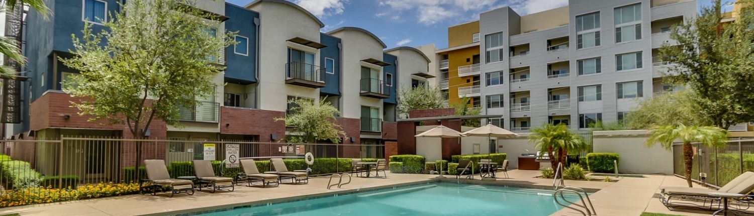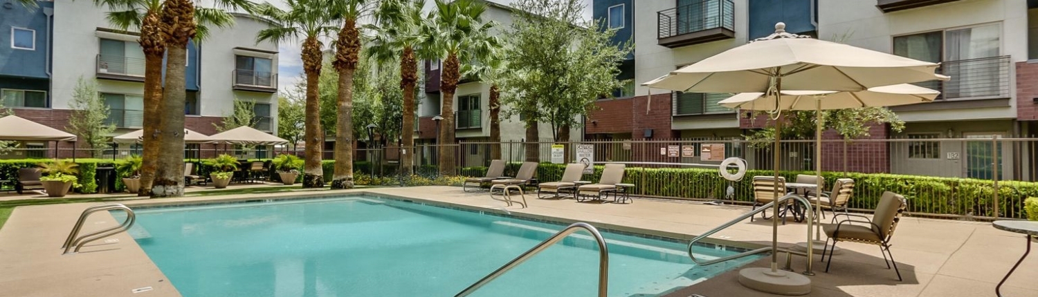 Residents of the gated community of 525 Town Lake enjoy a pool and spa with private cabanas, a grassy courtyard, barbeques, and an outdoor bathroom with shower. Located on the south shore of Tempe Town Lake next to Tempe Center for the Arts, it is just minutes from bus and light rail stations, Mill Avenue, and ASU. Residents are very close to the Phoenix Sky Harbor International Airport and the Loop 202 freeway.