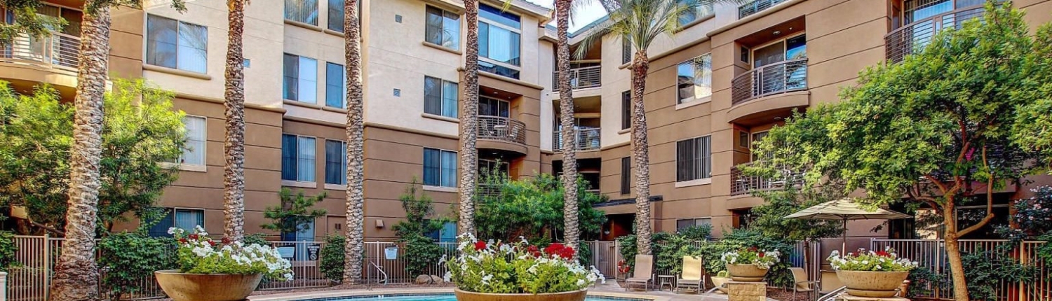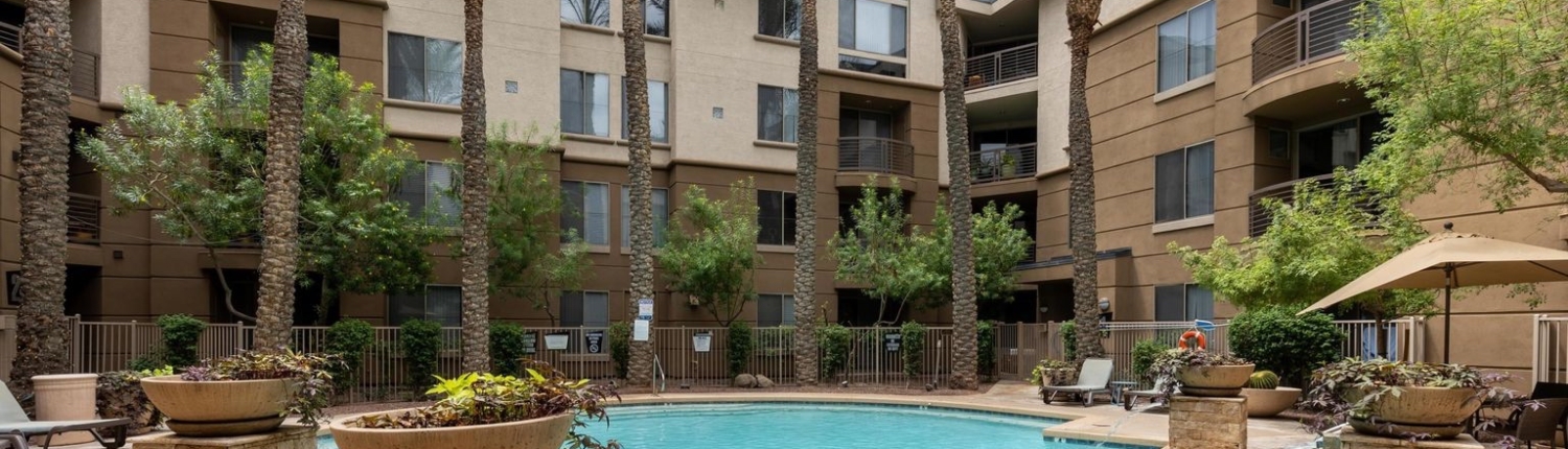 Biltmore Square is a gated condominium community in Phoenix, just north of Camelback Road adjacent to the Piestewa Freeway (SR-51). This community features studios, one, two and three bedroom floor plans, townhomes and penthouses. Residents have full access to the fully-equipped two-story fitness center, resident clubhouse with java bar and movie room, and three exclusive sparkling pools & heated spas. Many units have city light and mountain views, open and bright interiors. Biltmore Square is ideally situated for residents to enjoy all the nearby luxuries, including shopping and dining at Biltmore Fashion Park, The Shops At Town & Country and Camelback Colonnade.