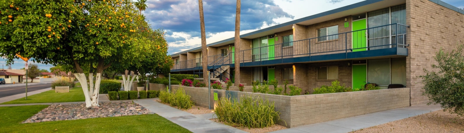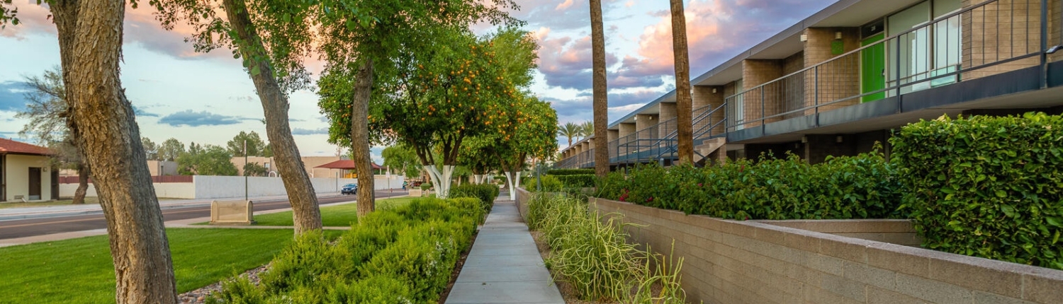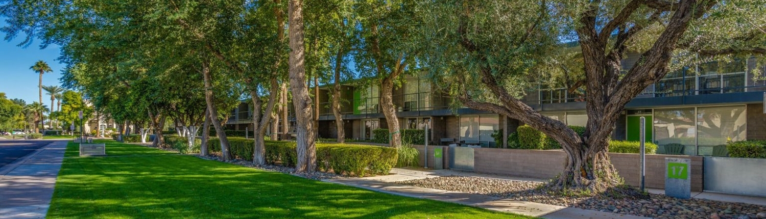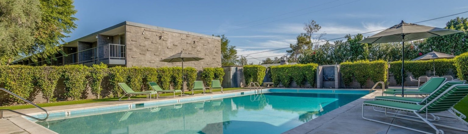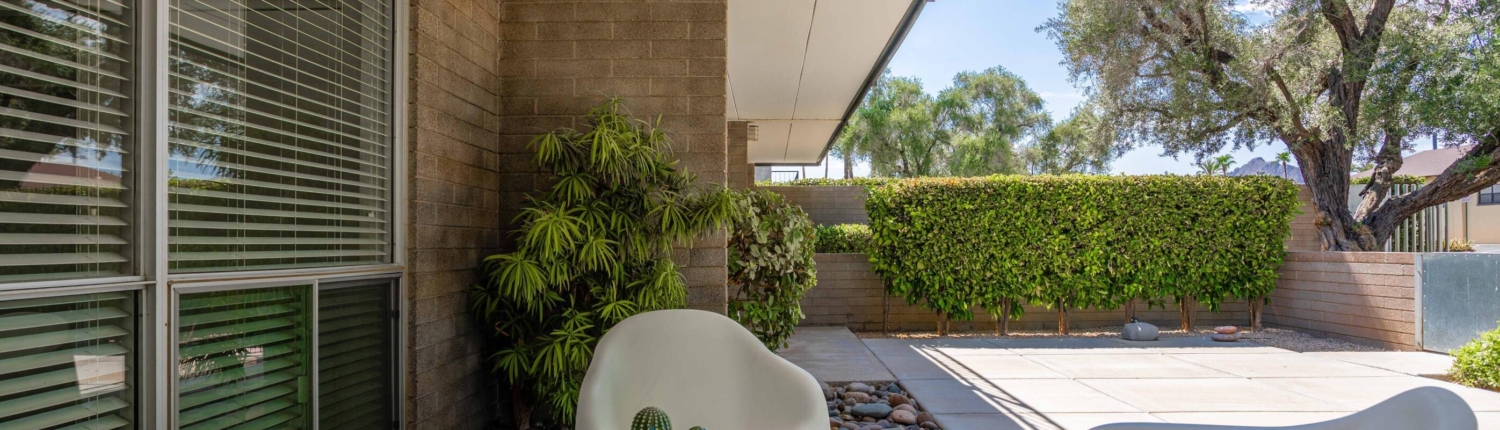Bon Vie is a desired mid-century modern community just blocks away from Old Town Scottsdale. Originally built in 1977 as apartments, Bon Vie was later renovated and converted into condos in 2004. Bon Vie is a two-level community that features two floor plans. A 672 square foot one bedroom and an 832 square foot two bedroom. These condos are fitted with higher-end finishes. The exterior of the community is constructed out of concrete block.