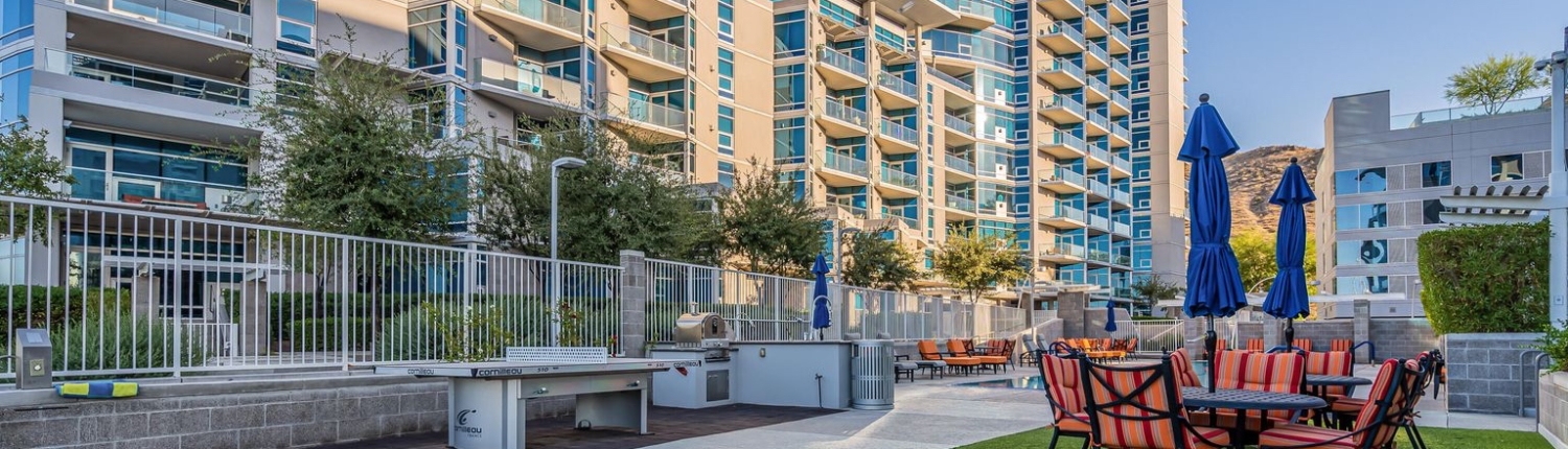 Edgewater Hayden Ferry condominiums are nothing short of luxury. Located alongside Tempe Town Lake just off Rio Salado Parkway and Mill Avenue, this community can’t be missed at this premium location. Each of the 40 private residences, within this 8-story contemporary designed glass tower, has floor to ceiling windows, high-end luxury finishes, spacious layouts and features top-notch amenities.