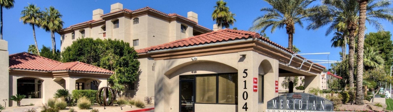 Meridian is a mid-rise condominium community located in highly sought-after Biltmore Estates. This gated community was built in 1990 and features one, two and three-bedroom floor plans ranging in size from 800 to 1,500 square feet. Each condo features a nice sized kitchen, private patio and living room fireplace. Community amenities include underground parking and storage, community pool and spa, 24-hour fitness center and a clubhouse. This popular midrise condo development is only 15 minutes from Phoenix Sky Harbor International Airport.